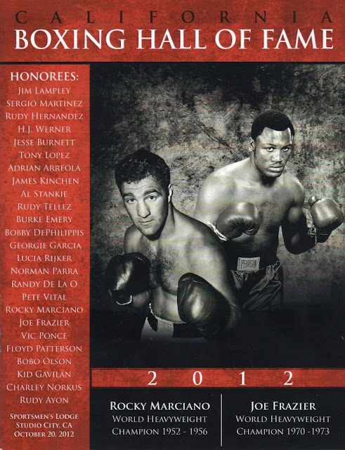 The above photo was taken at the 2009 World Boxing Hall of Fame at the LAX Los Angeles Marriott Hotel. Lucia Rijker was kind enough to sign the program for my wife Jeri and last month at the 2012 California Boxing Hall of Fame at the Sportsmen's Lodge in Studio City, she signed this photo for Jeri. Lucia Rijker, the greatest woman fighter of all time and a very gracious lady.